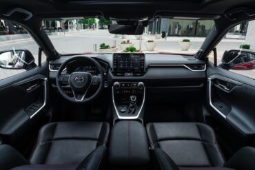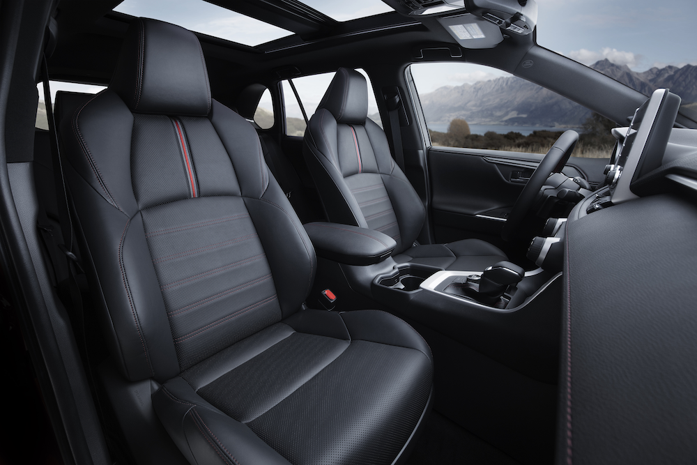The RAV4 interior is spacious and well appointed. The optional panoramic roof is great.