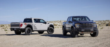 A pair of 2023 Raptor R pickups at rest.